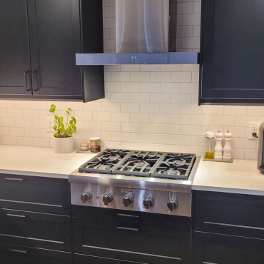 High-end appliances elevate the kitchen’s functionality to professional standards. The BOSCH refrigerator, dishwasher, wall oven–microwave combo, and range hood provide durability and cutting-edge performance. For the cooktop, the homeowners selected a THERMADOR model with its signature star-shaped burners, designed for even heat distribution and precision cooking.